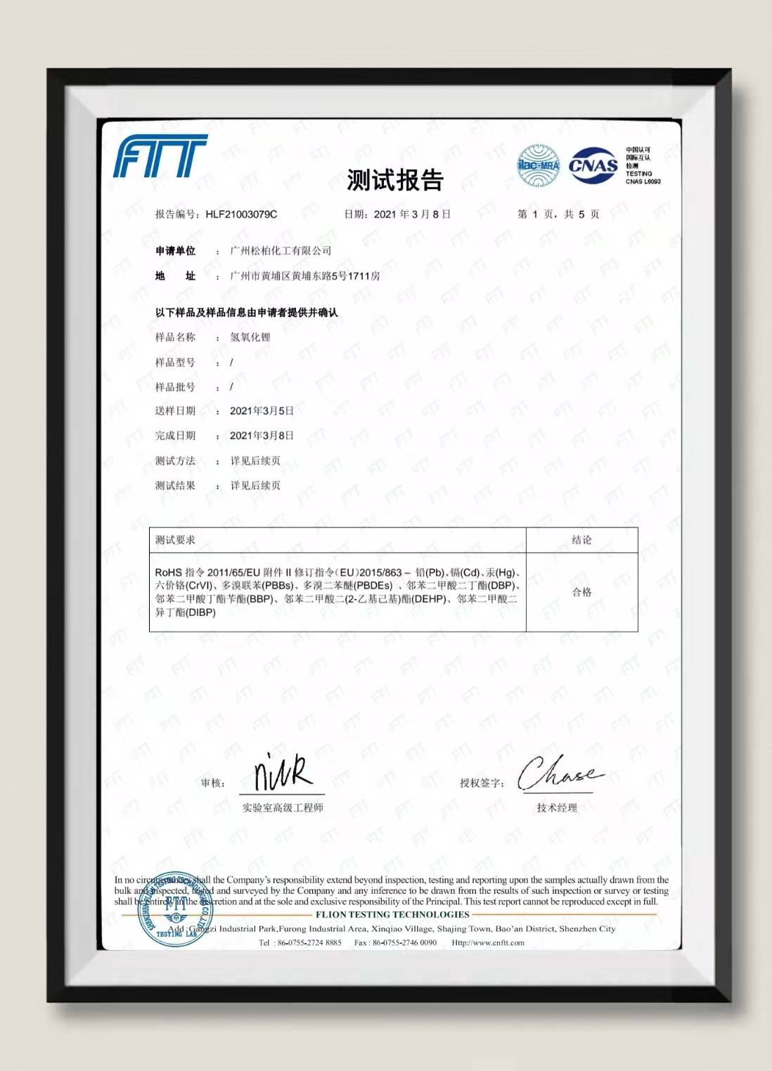 ROHS报告-氢氧化锂