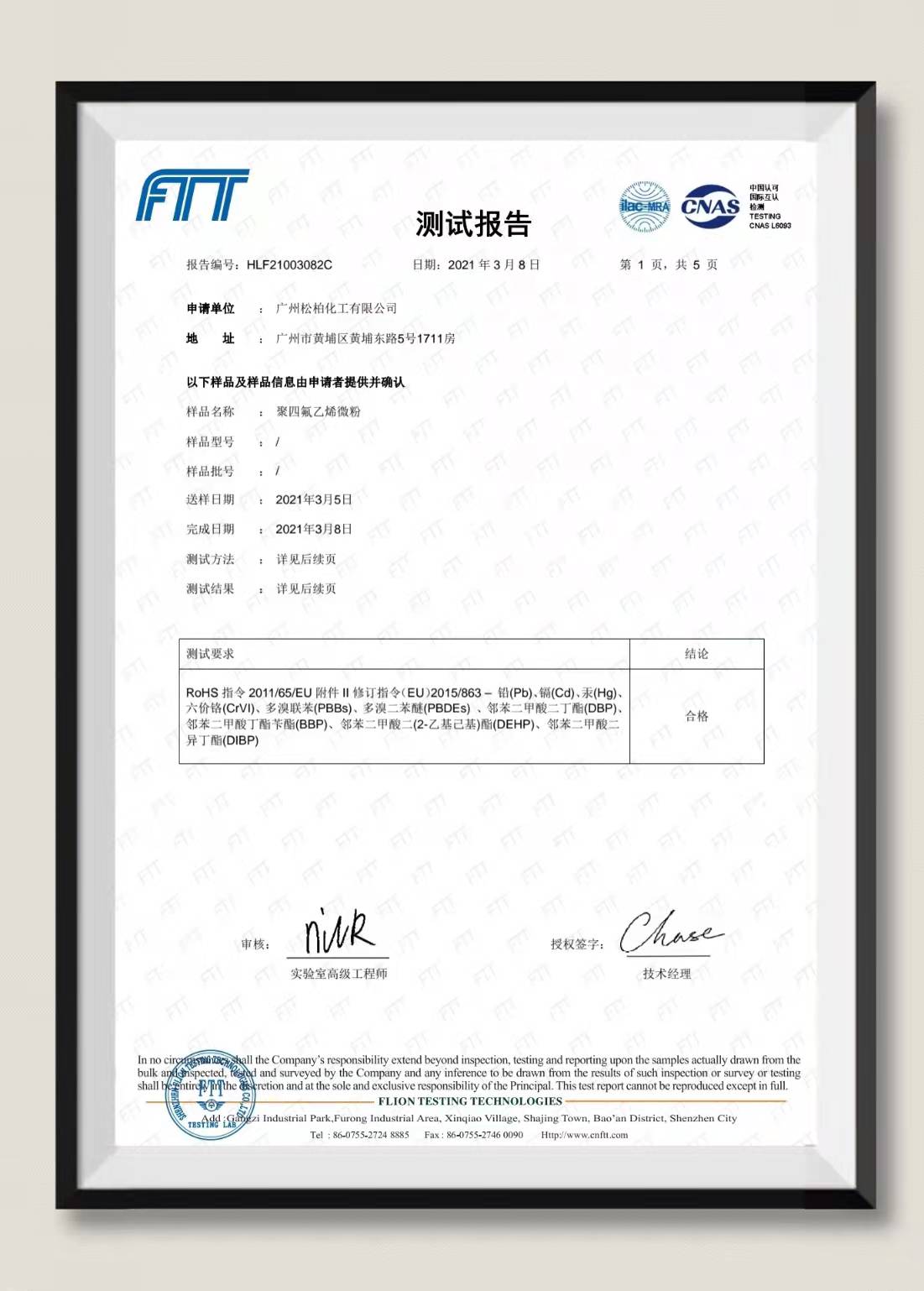 ROHS报告-四氟微粉