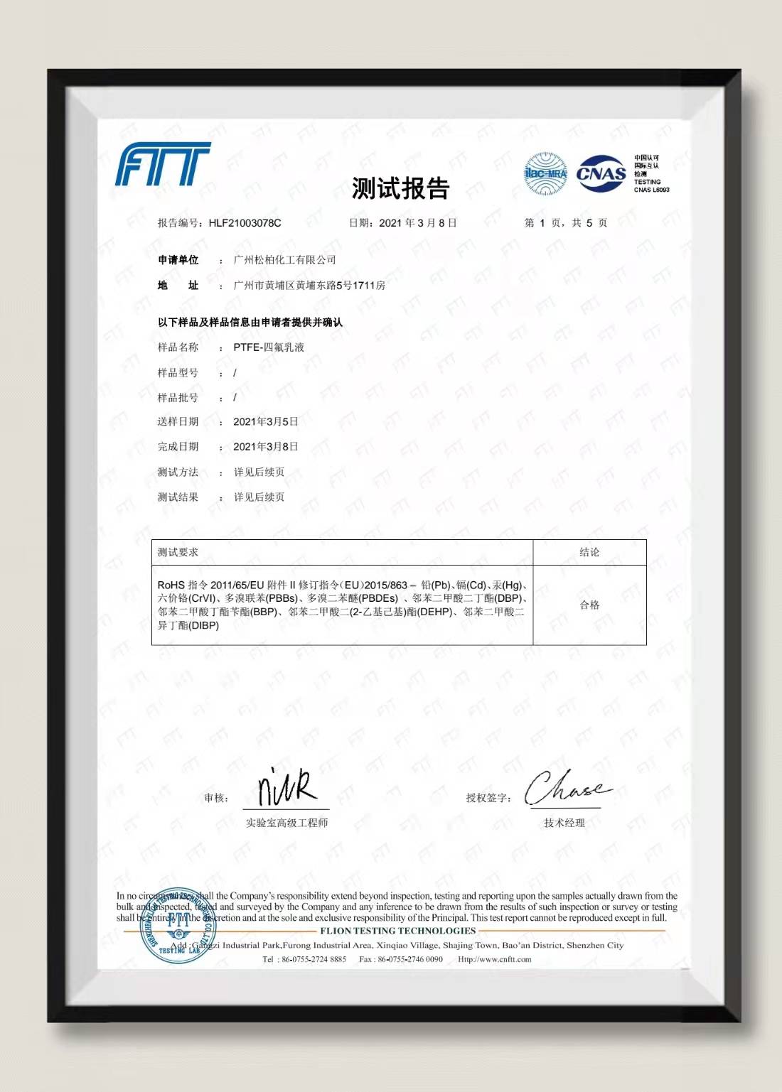 ROHS报告-四氟乳液