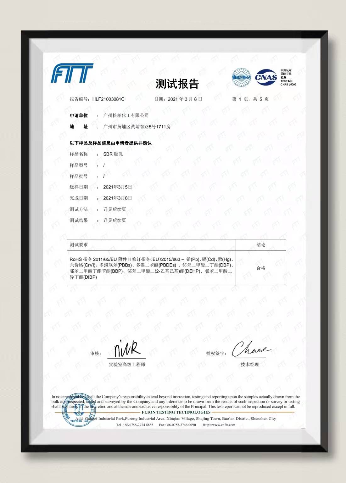 ROHS报告-SBR胶乳